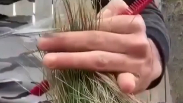 Bursa’da bir berber, karantina günlerinde evindeki çim ve çiçekleri tıraş ederek avunuyor. Berber önlüğü geçirdiği çimlere ara makası atan berber, tıraş makinesiyle de kesmeyi ihmal etmiyor.