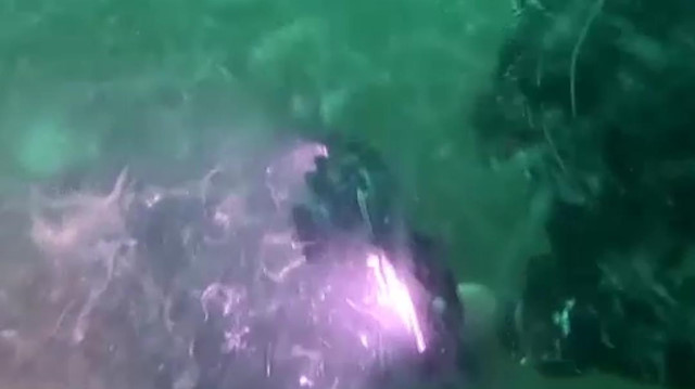 Tavşan Adası açıklarında 30 metre derinlikte gerçekleştirilen dalışta, müsilajın geniş bir alanda ve deniz suyunun tamamına yoğun bir şekilde dağıldığı görüntülendi. Ercan Akpolat, Serço Ekşiyan, Ateş Evirgen ve AA Foto Muhabiri Şebnem Coşkun'dan oluşan ekip, Tavşan Adası olarak da bilinen Neandros açıklarında, deniz altındaki müsilajı görüntülemek için dalış yaptı. Ortaya endişe verici bu görüntüler çıktı.