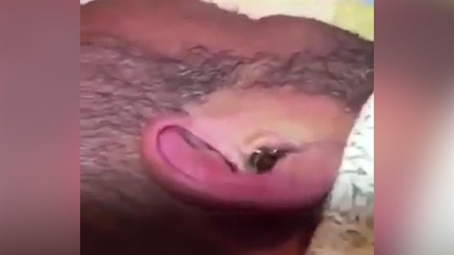 Kulağının acısıyla yerde yatan adama yardım eden arkadaşları, kulağın içine önce bir sıvı döküp bekliyor ardından ise suyun içinden bir örümcek beliriyor. Cımbız yardımıyla da örümcek alınıyor.