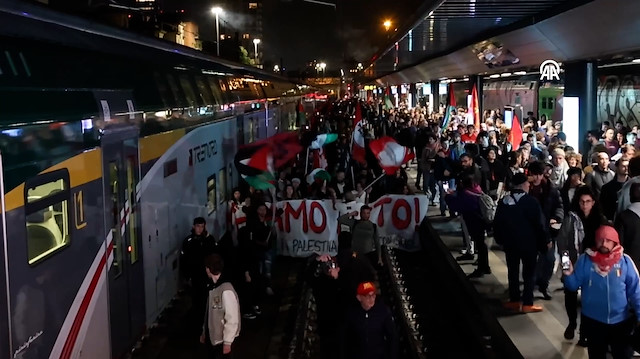 İsrail'in filoya saldırısı ülkede akşam saatlerinde protestolara yol açtı İsrail'in Küresel Sumud Filosu'na saldırması, İtalya'nın pek çok kentinde protestolarla karşılandı. Başkent Roma, Milano, Napoli, Torino ve Cenova başta olmak üzere pek çok kentte binlerce kişi akşam saatleri olmasına karşın İsrail'in filoya saldırısına tepki göstermek için meydanlara indi. Roma'da Termini Garı'nda buluşan binlerce kişi, 'Her şeyi engelleyelim' ve 'Bu ülkede her şeyi durduralım' sloganlarıyla, İsrail'in filoya saldırısını protesto etti. Göstericiler daha sonra başbakanlığa doğru yürüyüşe geçti. Napoli'de protestocular, protestolarını Merkez Garı'nda peronların üzerinde gerçekleştirdi.