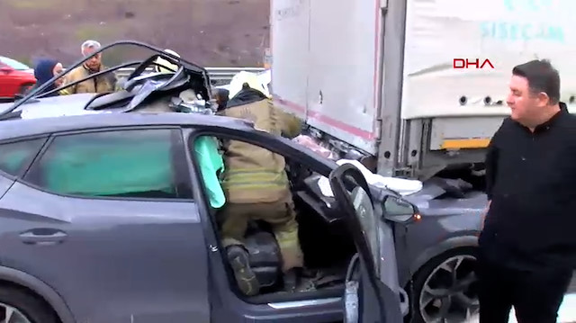 Kaza yerine ulaşan ekipler, otomobilin ön kısmının TIR'ın dorsesinin altında kaldığını belirledi. Araçta sıkışan sürücüyü kurtarmak için itfaiye ekipleri yoğun çaba harcıyor. Sağlık ekipleri de bölgede hazır bekleyerek kurtarma çalışmasının tamamlanmasının ardından yaralıyı hastaneye sevk etmeye hazırlanıyor.