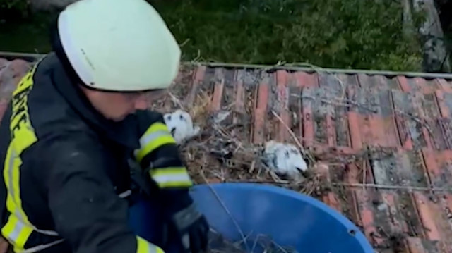 Kastamonu'nun Tosya ilçesinde itfaiye ekipleri, leyleklerin rüzgarda dağılan yuvasının yerine yenisini yaptı. İlçeye bağlı Ortalıca köyünde şiddetli rüzgar nedeniyle bir evin çatısındaki güneş sistemi üzerindeki leylek yuvası dağıldı, içindeki yavrular çatıya düştü. Köy muhtarı Salih Uysal'ın haber vermesi üzerine bölgeye gelen itfaiye ve Doğa Koruma ve Mili Parklar ekipleri leylekler için leğenden yeni yuva yaparak çatıya sabitledi. Muhtar Uysal, gazetecilere, şiddetli rüzgar nedeniyle leyleklerin yuvasının bozulduğunu söyledi. İlçede çok sayıda leylek bulunduğunu belirten Uysal, şunları kaydetti: 'Köyümüzün etrafı pirinç tarlalarıyla çevrili. Buralarda yetişen çeltik ve küçük hayvanlarla beslenen leylekleri artık köyümüzün bir parçası olarak görüyoruz. Evlerimizin üzerilerine yuva yapan leylekler, yavrularını yetiştirdikten sonra daha sıcak bölgelere göç ediyorlar. Akşam saatlerinde köyümüzde çok şiddetli rüzgar meydana geldi. 3 katlı bir evin çatısından yuva dağılarak aşağıya düşmüş. Bana haber verildiğinde hemen Tosya Belediyesi İtfaiye ekiplerini aradım. Sağ olsunlar, kısa sürede geldiler. Bozulan yuvadan arta kalan malzemeleri bir leğene doldurup eskisine benzeyen bir yuva yaptılar. Uçamayan 2 yavruyu da içine koydular. Birkaç saat sonra annesi yuvaya geldi. Şu anda bir sorun yok gibi görülüyor. İnşallah yavrular sağ salim büyür. Ekiplerimize çok teşekkür ediyorum.'