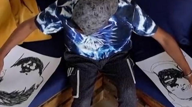 Libyalı sanatçı Ahmed Mahmoud, Lionel Messi ve Mohamed Salah gibi ünlü futbolcuların portrelerini elleri ve ayaklarıyla aynı anda çiziyor.