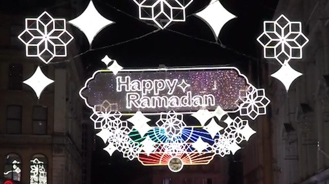 Aziz Foundation adlı vakıf ile Londra Belediyesi işbirliğiyle süslenen caddeye, ışıklarla 'Mutlu Ramazanlar' yazıldı.