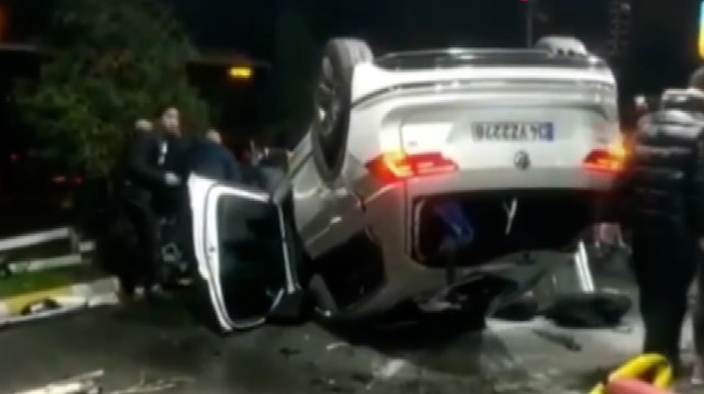 Beşiktaş Etiler'de sürücüsünün kontrolünden çıkıp kaldırıma çarpan lüks cip, takla atarak benzin istasyonuna daldı. Kazada 2'si kadın 4 kişi yaralanırken, facianın eşiğinden dönüldü.