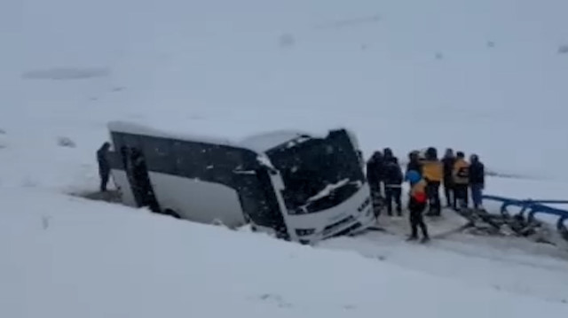 Bölgeye sevk edilen ekipler, üşüyen yolculara yardım etti. Yolcular ambulanslara alınarak ısıtılırken, otobüs bulunduğu yerden traktörle çıkartıldı.
