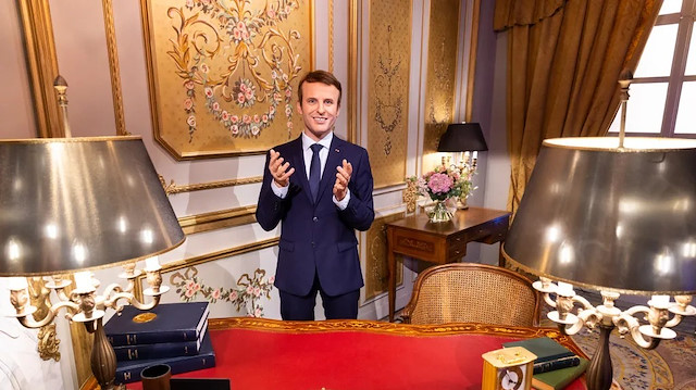 Fransa Cumhurbaşkanı Macron'un balmumu heykeli Paris'teki müzeden çalındı. Heykel Rusya Başkonsolosluğu önünde yapılan eylemde görüldü.