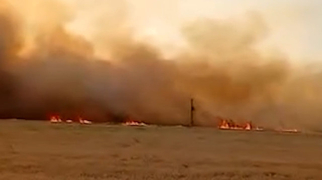 Mardin'in Kızıltepe ilçesinde yangın sonucu yaklaşık 350 dönüm biçilmemiş buğday yandı.