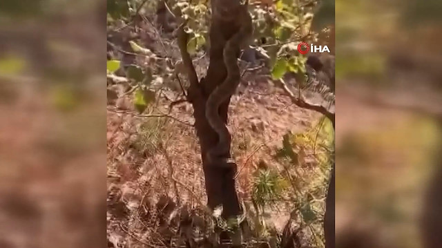 Doğada gezinti yapan bir vatandaş, ağaç gövdesine tırmanan yılanı fark etti. Yılanın engerek türü olduğunu öğrenen vatandaş, hayvanın çıkışını cep telefonu kamerası ile kaydetti. O anlar sosyal medyada yoğun ilgi gördü.