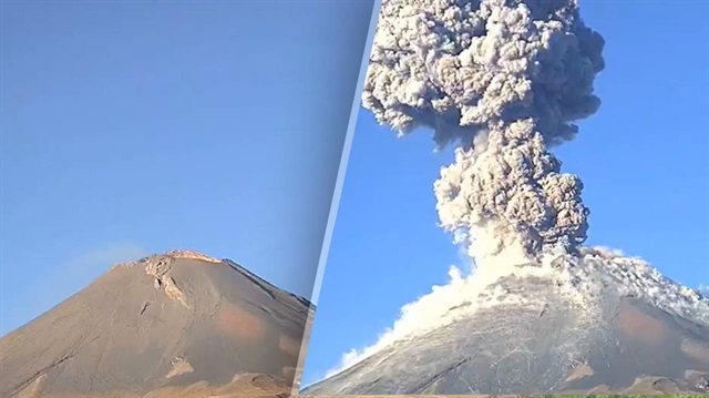 Ulusal sivil koruma koordinatörüne göre, Meksika'daki Popocatépetl yanardağı, 9-10 Kasım tarihleri arasında 24 saat içinde üç kez patladı. Volkanın patlama anı ise kameralara böyle yansıdı.