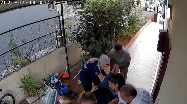 Adana'da bir eve kargo getiren şahıs merdivenden düşen 70 yaşındaki kadını görüp ambulansı arayarak hayatını kurtardı. O anlar ise güvenlik kamerası tarafından saniye saniye görüntülendi.