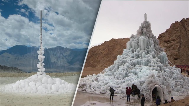 Yapay buzdan kulenin yapılış amacı ve adım adım oluşumu izleyenleri mest etti.