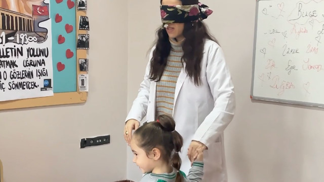 Kaşif Çocuk Akademisi öğretmenleri, 3 Aralık Dünya Engelliler Günü'nde anlamlı bir etkinlik düzenledi. Görme engellilerle empati urabilmek için öğretmenler, gözlerini bağlayarak ders işledi. Öğrenciler ise öğretmenlerine yardımcı oldu.