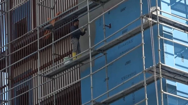 Yangın söndürme çalışmaları esnasında ise bir görüntü dikkatlerden kaçmadı. Otelin hemen yan kısmında iskele üzerinde sıva ve boya yapan bir işçi, yangını umursamayıp işine devam etti.