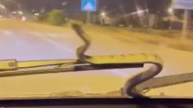 Antalya'da otomobilin kaputuna giren yılan, araç seyir halindeyken aracın ön camına çıktı. Olay anları cep telefonu kamerasıyla kaydedildi.