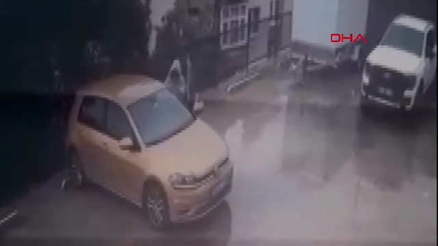 Bursa'da otomobilini yanlışlıkla geri vitese alan Nükhet F. (65), yaşklaşık 7 metre yükseklikten ağaçlık alana düştü. Kaza anı bir apartmanın güvenlik kamerasına yansıdı.