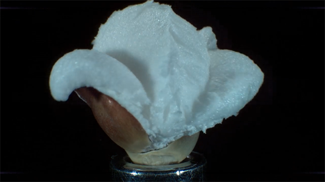 Warped Perception YouTube kanalı Flex 4K kamerası ile mısır tanesinin patlayışını çekti. Mısır saniyede 1300 kare hızında patlıyor ve mısıra dönüşüyor.