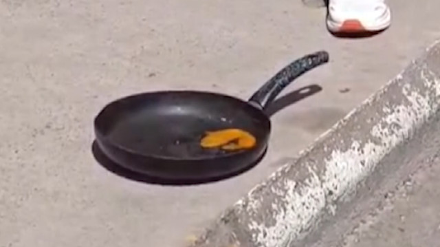 Pendik'te bir esnaf 40 dereceyi gören havada yumurta pişirdi