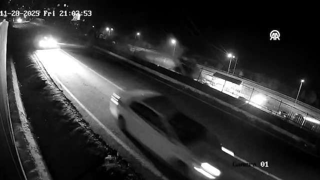 Kalça'nın kullandığı kamyonetin bariyere çarpması ve boşluğa düşmesi, çevredeki bir iş yerinin güvenlik kamerasınca görüntülendi.