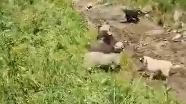 Sürüye eşlik eden köpeklerin müdahale etmeye çalıştığı ancak ayının yaklaşmasına engel olamadığı anlaşılıyor. Çoban, güvenlik nedeniyle uzaktan izlemek zorunda kaldı.
