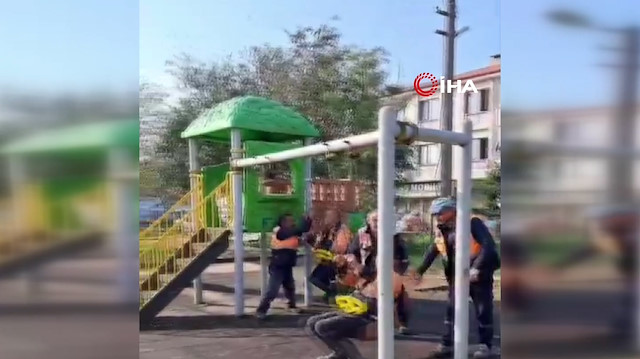 Sakarya'nın Karasu ilçesinde temizlik işçilerinin çocuk parkında salıncağa binerken geçirdikleri keyifli anlar, cep telefonu kamerasına yansıdı.