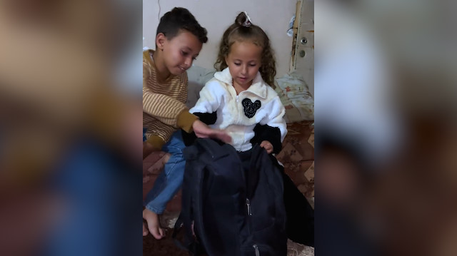 Görüntüler, baba ve kızı arasındaki duygusal anları kaydediyor. Videoda, babanın kızına 'Sana güzel bir hediye aldım' demesinin ardından küçük kız merakla sırt çantasını açıyor.