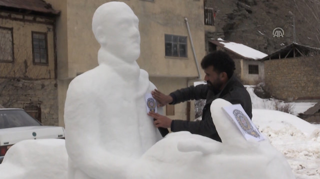 Şehit Fethi Sekin'in kardan heykelini yaptı
