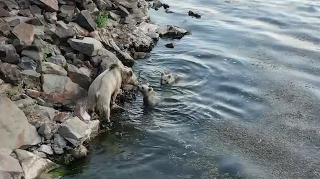 Bitlis'in Ahlat, Güroymak ve Tatvan ilçe sınırları içinde bulunan Nemrut Kalderasında yaşamlarını sürdüren ayılar sıcaktan bunalınca kendilerini Nemrut'un serin sularına attı. Dünyanın ikinci, Türkiye'nin ise en büyük krater gölü olan Nemrut Kalderası, bu kez ilginç görüntülere sahne oldu. Kavurucu yaz sıcaklarından bunalan ayılar, serinlemek için kendilerini Nemrut Krater Gölünün buz gibi sularına bıraktı. Ziyaretçiler tarafından cep telefonlarıyla kaydedilen görüntülerde, ayıların gölde keyifle yüzdüğü ve zaman zaman suyun içinde oyun oynadığı anlar dikkat çekti. Özellikle sıcak havalarda sık sık ortaya çıkan ayılar, bu kez doğal yaşamın en sevimli karelerini sergiledi. Doğaseverler, Nemrut'un yalnızca eşsiz manzarasıyla değil, aynı zamanda yaban hayatıyla da büyük bir zenginlik sunduğunu belirterek, bu anların doğanın en güzel sürprizlerinden biri olduğunu ifade etti. Nemrut Kalderası, endemik bitki çeşitliliği, gölleri ve vahşi yaşamıyla her yıl binlerce turisti ağırlarken, bu kez ayıların serinleme sevinci görenlere unutulmaz bir deneyim yaşattı. 'Anne ve yavru ayılar piknikçilerin sofralarına misafir oldular' Nemrut Kalderası'nda doğa yürüyüşü ve piknik yapan vatandaşlar, unutulmaz bir sürpriz yaşadı. Kalderada yaşamlarını sürdüren anne ve yavru ayılar, piknikçilerin kurdukları sofralara yaklaşarak yiyecek aradı.