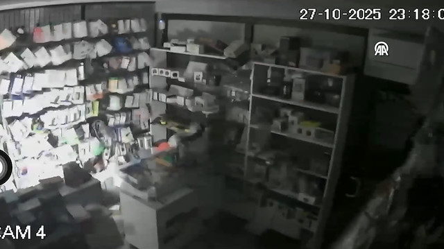 Balıkesir'in Sındırgı ilçesinde meydana gelen 6,1 büyüklüğündeki deprem bir iş yerinin güvenlik kamerasına yansıdı.