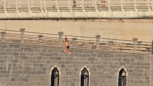 Şırnak'ın Cizre ilçesinde çocuklar serinlemek için tehlikeye aldırış etmeden metrelerce yüksekten Dicle Nehri'ne atlayarak serinlemeye çalıştı. O anlar cep telefonu kamerasıyla kaydedildi.