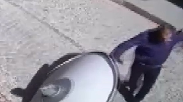 Adamın yolda yürüdüğü sırada çanak anteni görmesi ve antenin adamın omzuna çarparak yere düştüğü anlar çevredeki bir iş yerinin güvenlik kamerasına saniye saniye yansıdı.