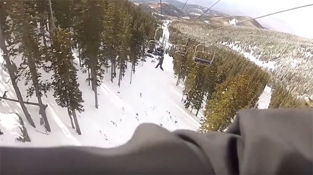 Yaklaşık 13 metre yükseklikten düşen çocuk, öndeki teleferik kabininden böyle görüntülendi.