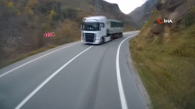 Trabzon-Araklı-Bayburt yolu her gün yeni bir tehlikeyle gündeme geliyor. Ağır tonajlı araçların denetim azlığı nedeniyle bu güzergâhı tercih etmesi, riski daha da artırıyor. Rampalardan hızla inen tırlar, özellikle keskin virajlarda şerit ihlali yaparak karşı yönden gelen araçlar için büyük tehlike oluşturuyor. Son olarak kazaya ramak kala yaşanan bir an, bir aracın kamerasına yansıyarak tehlikeyi gözler önüne serdi. Yine Araklı'da, bu kez ilçenin Karadeniz Sahil Yolu geçişinde bir otomobil sürücüsünün kamyon sürücüsüne yaşattığı zor anlar araç kameralarına yansıdı.