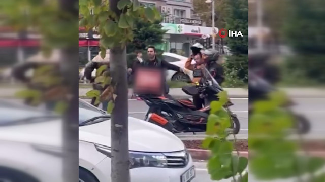 Esenyurt'ta trafikte motokurye ile kavga eden bir sürücü, olayı görerek ayırmak isteyen bir vatandaşla tartıştı. Yaşanan arbede vatandaşın cep telefonu kamerasına yansıdı. Olay, dün öğle saatlerinde Esenyurt Cumhuriyet mahallesinde meydana geldi. Trafikte yol verme tartışması yüzünden motokurye ile araç sürücüsü önce sözlü tartışmaya girdi. Duruma sinirlenen araç sürücüsü bir anda araçtan inip motokuryeye saldırmaya başladı. Olayı gören çevredeki vatandaşlar ise müdahale edip araya girdi. Bu duruma da sinirlenen araç sürücüsü çevredeki vatandaşlarla tartışmaya başladı. Yanında bulunan kız arkadaşının araya girmesiyle şahıs olay yerinden uzaklaşırken yaşanan arbeden cep telefonu kamerasına böyle yansıdı.