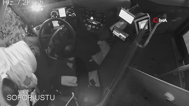 Ümraniye'de otomobilin İETT otobüsüne çarpıp takla atması sonucu 1'i ağır 2 kişi yaralandığı trafik kazasının görüntüleri ortaya çıktı. Görüntülerde, şoförün çarpmanın etkisiyle otobüs camına sıkıştığı ve bir süre bu şekilde ilerlediği görülüyor.