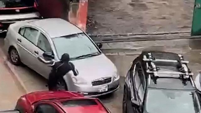 Üsküdar'da 2 kişinin garaj önüne park edilen otomobilin aynalarını ve sileceklerini kırması cep telefonu kamerasınca kaydedildi.
