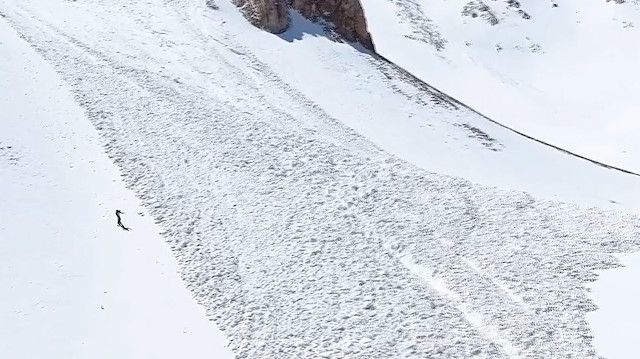 Bir grup kayakçı, dün metrelerce karın bulunduğu 3 bin 550 metre yüksekliğindeki Artos Dağı'na tırmandı. Yaklaşık 4 saat süren zorlu tırmanışla zirveye ulaşan kayakçılar, bir süre mola verdikten sonra yüksek eğimli bölgeden snowboard ile slalom yaparak inmeye başladı. Bu sırada zirveye yakın noktada düşen çığın altında kalan Gün, kar yığınıyla bir süre sürüklendikten sonra kendi imkanlarıyla kurtulmayı başardı. Çığdan son anda kurtulan Gün'ün arkadaşları da farklı bir güzergahtan iniş yapmak zorunda kaldı. Çığın düşmesi ve kayakçının kurtulduğu o anlar, drone ile görüntülendi.