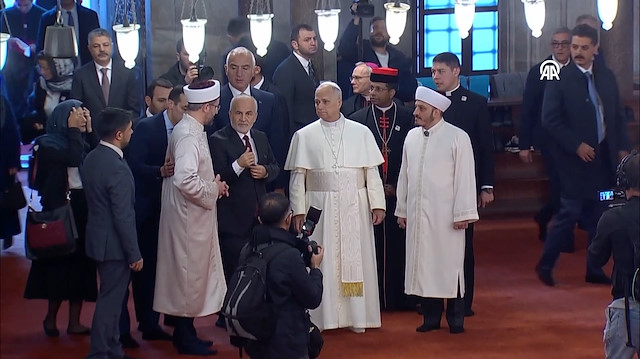 Geceyi Şişli'deki Saint Esprit Katedrali'nde geçiren Papa 14. Leo'nun, Cumartesi günkü temasları kapsamındaki ilk durağı Sultanahmet Camii oldu.