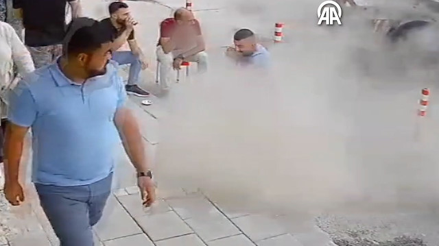 İnönü Caddesi üzerinde arkadaşlarıyla işletmesinin önünde çay içerken yoldan geçen tırın lastiğinin patlaması sonucu yaralanan 31 yaşındaki Eyüp Yıldırım, AA muhabirine Kahramanmaraş merkezli 6 Şubat 2023'teki depremlerle iş yerlerinin yıkıldığını ve işine konteynerde devam ettiğini hatırlattı. Havaların sıcak seyretmesinden dolayı işletme önünde oturduğunu anlatan Yıldırım, şöyle konuştu: 'Ağacın kenarında otururken iş makinesi geliyordu. Arkadaşlara bu iş makinesi üstümüze düşer dedim şaka yaptım. Yüzümü dönmemle tır dönüş yaptı ve lastiği patladı. Sırtımda yaralar ve kulağım az duyuyor. Adamı durdurmaya çalıştım ve durmadı gitti. Kuzenim yanımdaydı onun da parmağında sıkıntı var. Ben ve kuzenim yaralandık.' İşletmenin güvenlik kamerasınca kaydedilen görüntülerde, caddedeki işletmesinin önünde oturduğu sırada yoldan geçen tırın lastiğinin patlaması ve vatandaşların kaçması yer aldı.