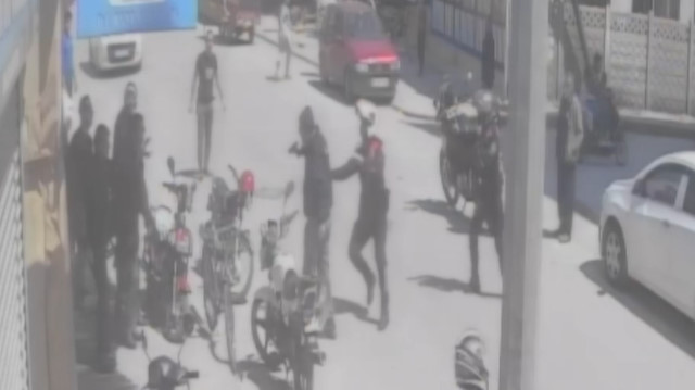 Mersin'de caddede tartıştığı kardeşine tabancayla ateş etmek üzere olan zanlıya yoldan geçen motosikletli Yunus timince müdahale edilmesi güvenlik kamerasına yansıdı.