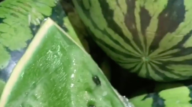 Uzak Doğu'da gördüğümüz garip meyvelere bir yenisi daha eklendi; yeşil karpuz!