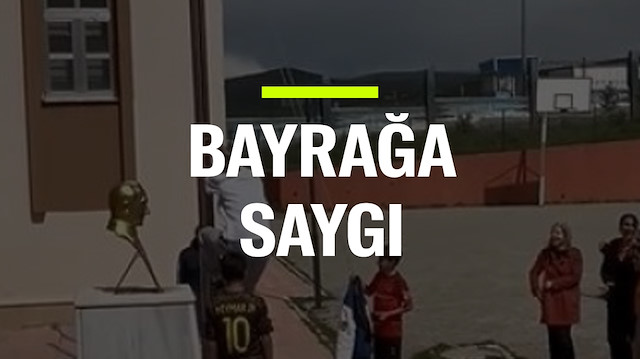 Ardahan'da okul önünde direğe dolanan bayrağı tırmanarak çözen beden öğretmeni, veliler ve öğrencileri tarafından büyük alkış aldı