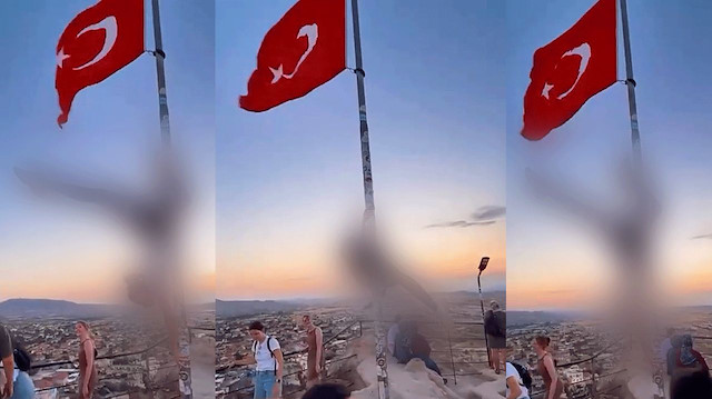 Kapadokya'da yabancı uyruklu bir turist, Türk bayrağı direğinde direk dansı yaptı. Nevşehir Valiliğinden konuya ilişkin şu açıklama geldi: