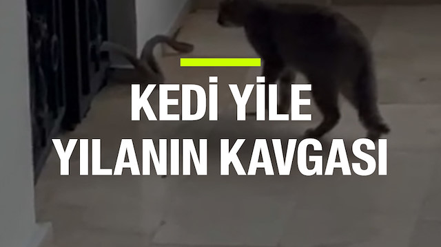 Antalya'nın Alanya ilçesinde sokak kedisi ile yılanın apartman girişindeki kavgası cep telefonu kamerasıyla görüntülendi.