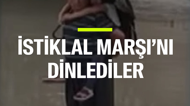 Bir elinde şemsiye, sırtında torunu olan dede, İstiklal Marşı'nın sağanak altında bekleyerek dinledi. Bu anlar, bir öğretmen tarafından cep telefonuyla görüntülendi. Sosyal medyada yayınlanan görüntüler büyük beğeni topladı.