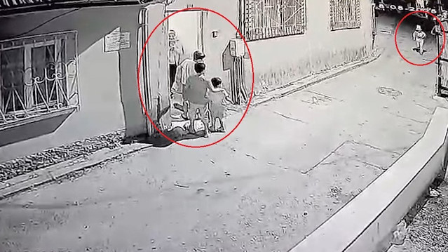 Şüphelinin sokağa girdiği anda, 2 annenin çocuklarıyla birlikte eve kaçtığı anlar da güvenlik kamerasına yansıdı.