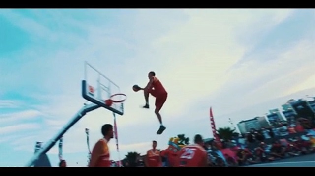 Takla atarak attığı basket görenleri şaşkına çevirdi.