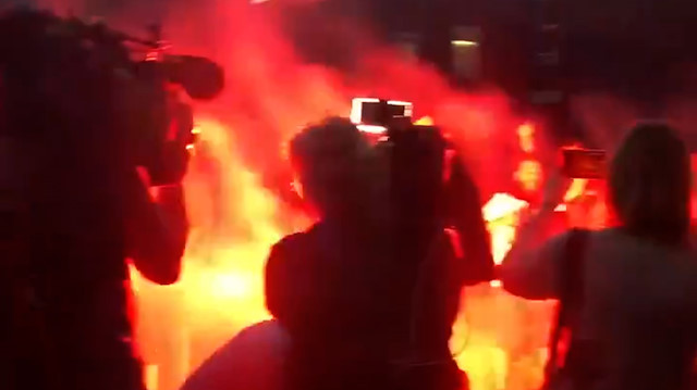 Bir grup taraftar ise Anfield Stadı'nın dışında kırmızı meşaleler yaktı.