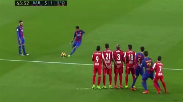 Ligde Gijon'u konuk eden Barcelona, rakibini 6-1 mağlup ederek maç fazlasıyla liderliğe yükseldi. Neymar attığı muhteşem frikik golüyle izleyenleri hayran bıraktı.