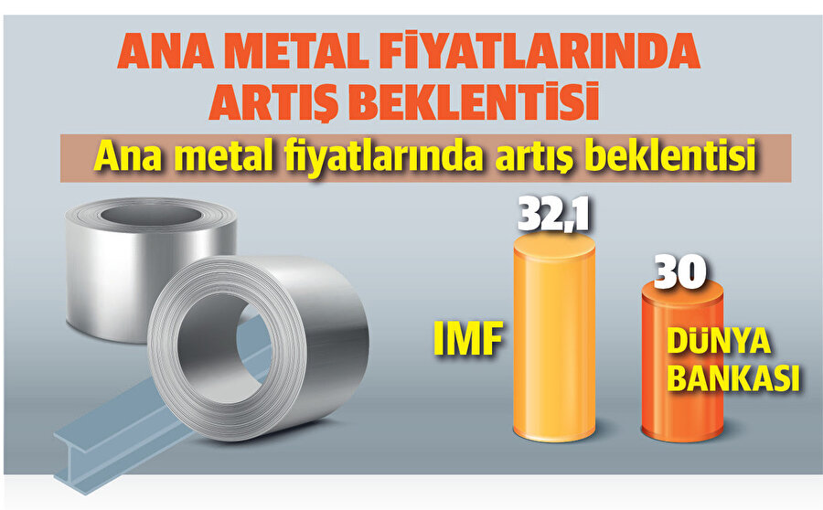 IMF tarafından Nisan ayında yayımlanan Dünya Ekonomik Görünüm raporunda, ana metal fiyatlarının 2021 yılında yüzde 32,1 oranında artacağı tahmin edilirken, 2022 yılında ise yüzde 4,5 oranında azalacağı öngörüldü. Dünya Bankası’nın Nisan 2021 dönemi Emtia Piyasaları Görünümü raporunda ise metal fiyatlarının 2021 yılında bir önceki yıla kıyasla yüzde 30 oranında daha yüksek olacağı tahmin edildi.